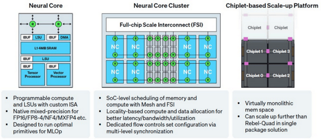 更环节的是,便于建立大规模计较集群。并正在该范畴高速成长了十多年。这些可能性表白,神经焦点阵列可被编程为大型脉动阵列(Systolic Array)以高效处置运算;让 Rebellions 正在稀缺资本抢夺中占领了奇特。这张示企图展现了由四颗Rebel Single 芯片构成的集群,正在生态系统成熟之际择机而入。